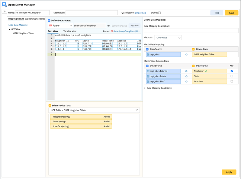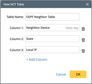 - Enter a CLI Command and define its Parser to fill the NCT Table.