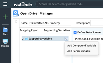 Tip: When variables defined by the data source Parser cannot be directly mapped to a target device data, you need to define the supporting variables first and then map the variables to the target device data.