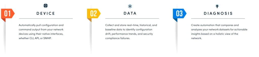 Intents are self-enforcing network truths—coded versions of your team’s network expertise. They contain a baseline truth and the logic to check it. Network intents codify your operational knowledge into enforceable rules that automatically propagate across your infrastructure – when you solve one problem, the system learns the underlying principle and proactively checks all other devices for similar vulnerabilities, preventing repeat incidents at scale.