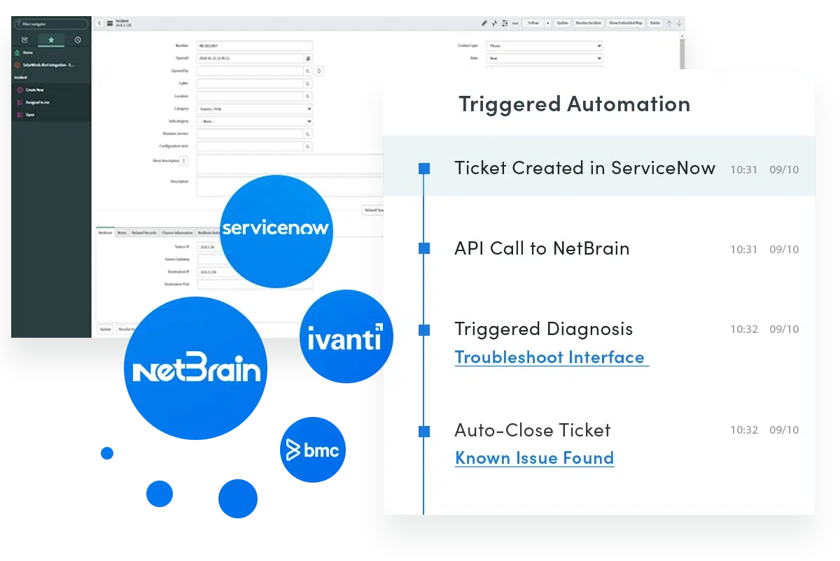 Managing large and complex networks is a meticulous job. It involves a series of repetitive tasks that can take a huge chunk of your engineers’ time. With NetBrain’s Next-Gen platform, you can take time-consuming coding work off your plate. Instead of scripting or coding, our no-code automation software captures — via graphical interface — the knowledge your subject matter experts use daily, making it sharable with your entire team and executable by machine.