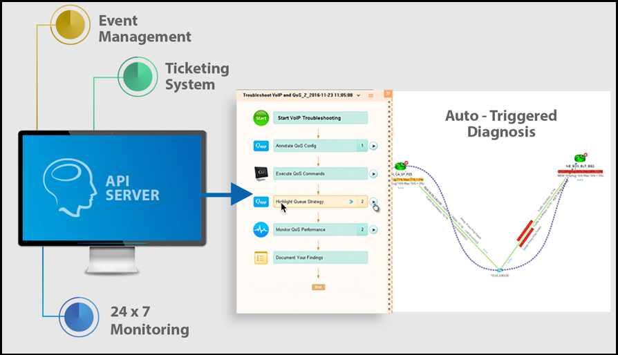 Just-In-Time Automation is an API-triggered NetBrain diagnosis that clients usually program to occur if a monitoring alert or a helpdesk ticket is created.