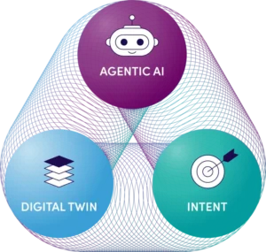 A digital twin is a continuously updated model of your network — every device, every interface, every path, every dependency across on-premises, cloud, and hybrid environments. It auto-discovers the network and keeps that model current so that when a problem comes in, the AI already knows your topology without being told.