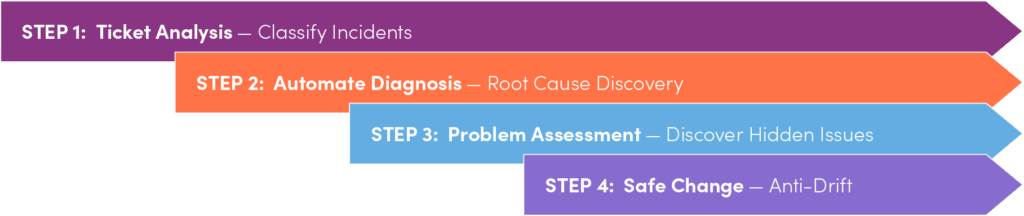 Just as a doctor analyzes patient records, automation and AI analyze past tickets to get a foundation for troubleshooting future incidents. By analyzing past incidents, teams can identify the handful of ticket types that consume the most time and recur the most frequently. The goal is continuous improvement and lower MTTR.