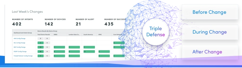 - Before change, pre-validate network configurations.