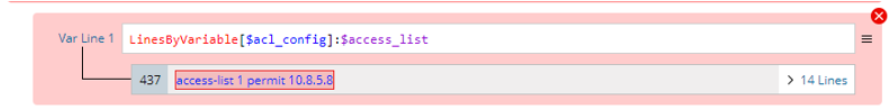 Example 1: Parse the lines containing a single variable, e.g., parse acl config per line.