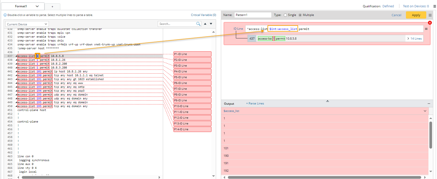 Example 2: Parse the lines containing keywords (insert a variable template). In this example, we will parse acl config for each access-list id.