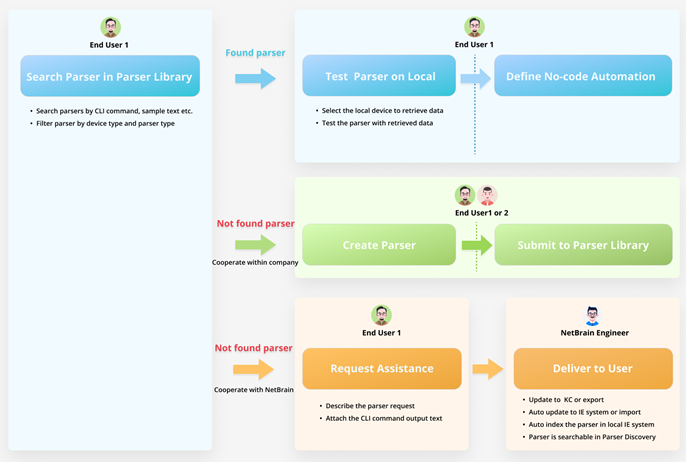 10.1.15.12-06212024 Parser Discovery Parser Discovery allows you to : Quickly find a parser you need from the parser librarySubmit a ticket to request NetBrain Engineers to help you create a parser