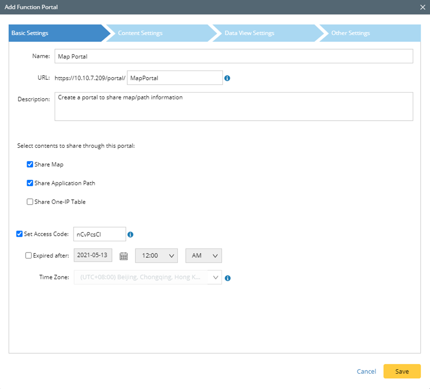 Note: For the Map setting, you can select site maps available to function portal users.