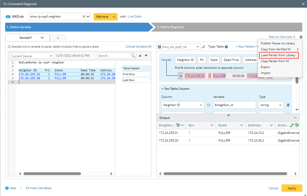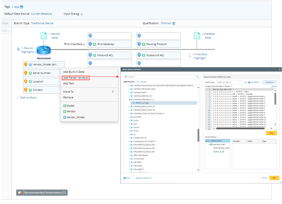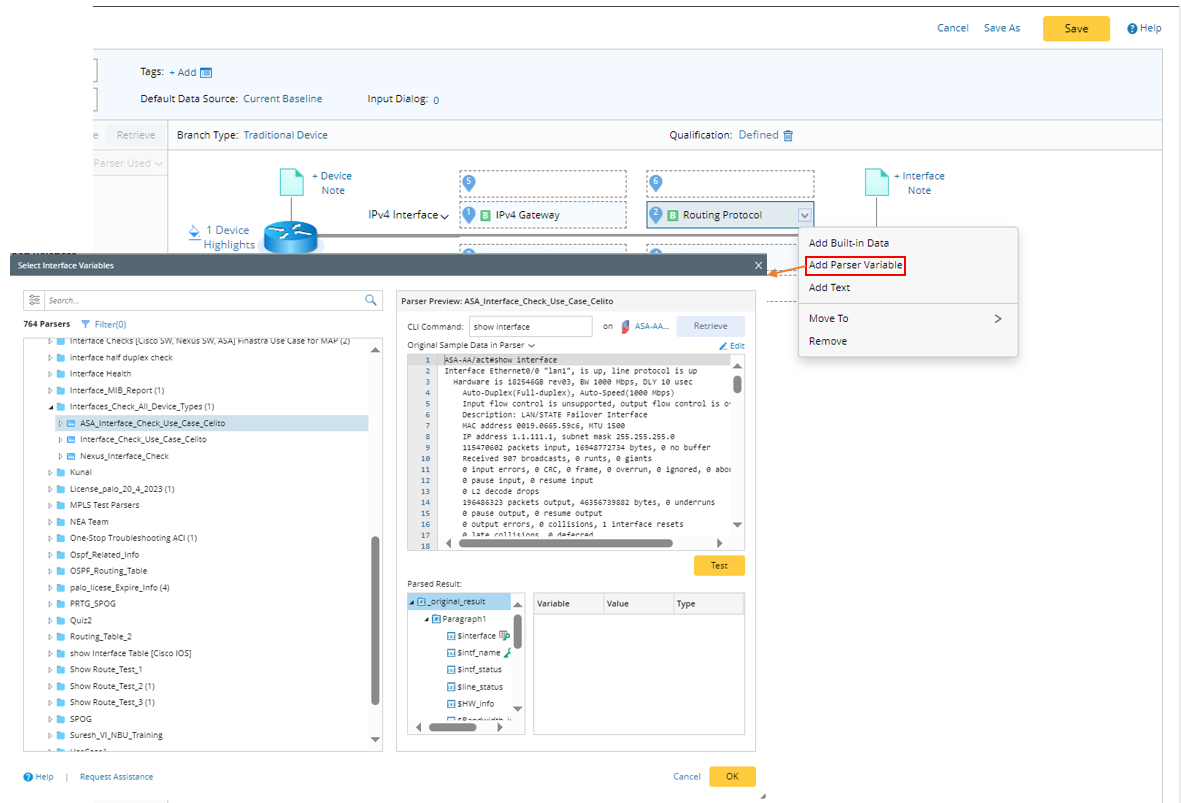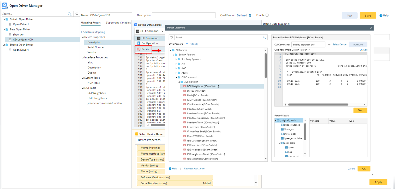 Parser Discovery Window will only show up when you need to select a Parser or load a Parser in NetBrain Automation functions: