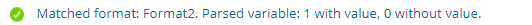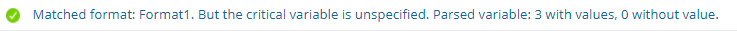 When a format has no critical variable, it will always be used to match. The best practice is to specify critical variable for each format when multiple formats are defined. Matched format: Format N. Parsed variable: X with value, Y without value.