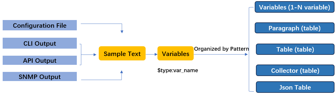 Visual Parser uses NetBrain-specific grammar to turn plain text (such as device CLI command output, SNMP output, or configuration file text) into programable variables and enable "What you see is what you can program" with no or little coding. It enables network engineers familiar with the parsing grammar to parse the configuration file, CLI command output, SNMP output, and API output for most automation problem resolutions.